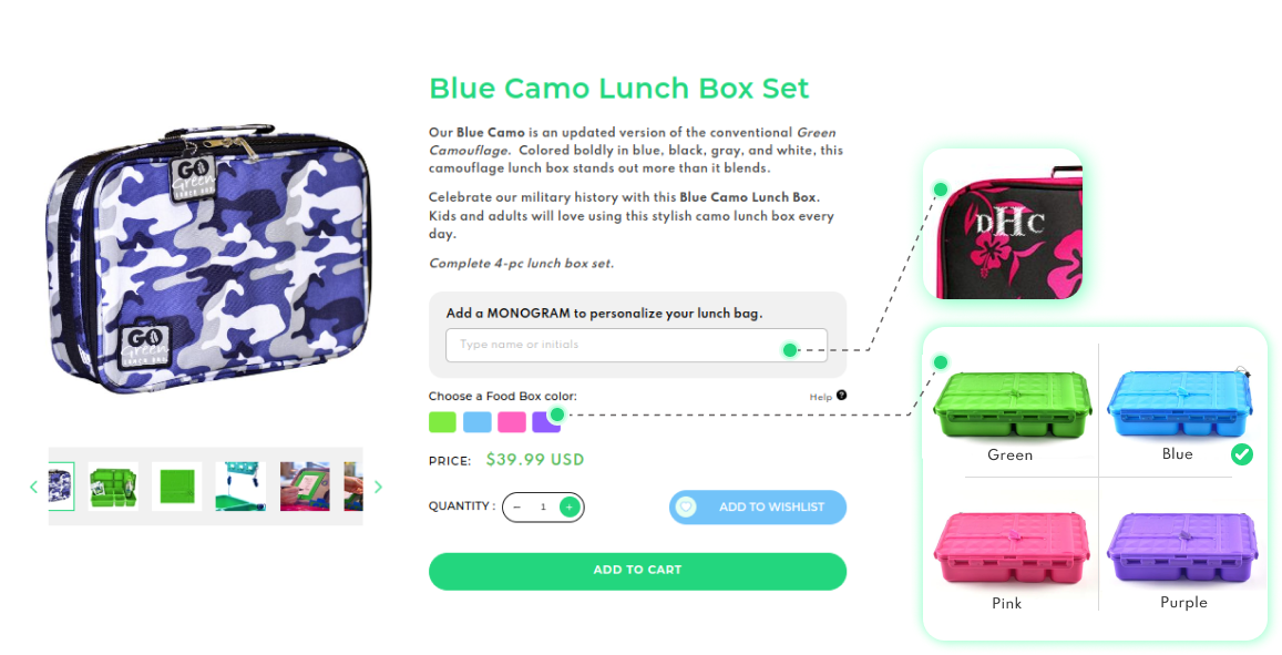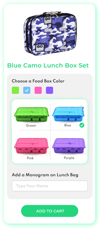 Go Green Lunch Boxes are the earth-friendly solution to reducing waste in our landfills. Bento box design with 5 compartments to organize your food and to keep it fresh. Our spill-proof lid, with its patented “Turn ‘n Lock,” prevents messy spills and keeps wet and dry food items separated. Stainless steel bottle for beverages and reusable ice pack included.