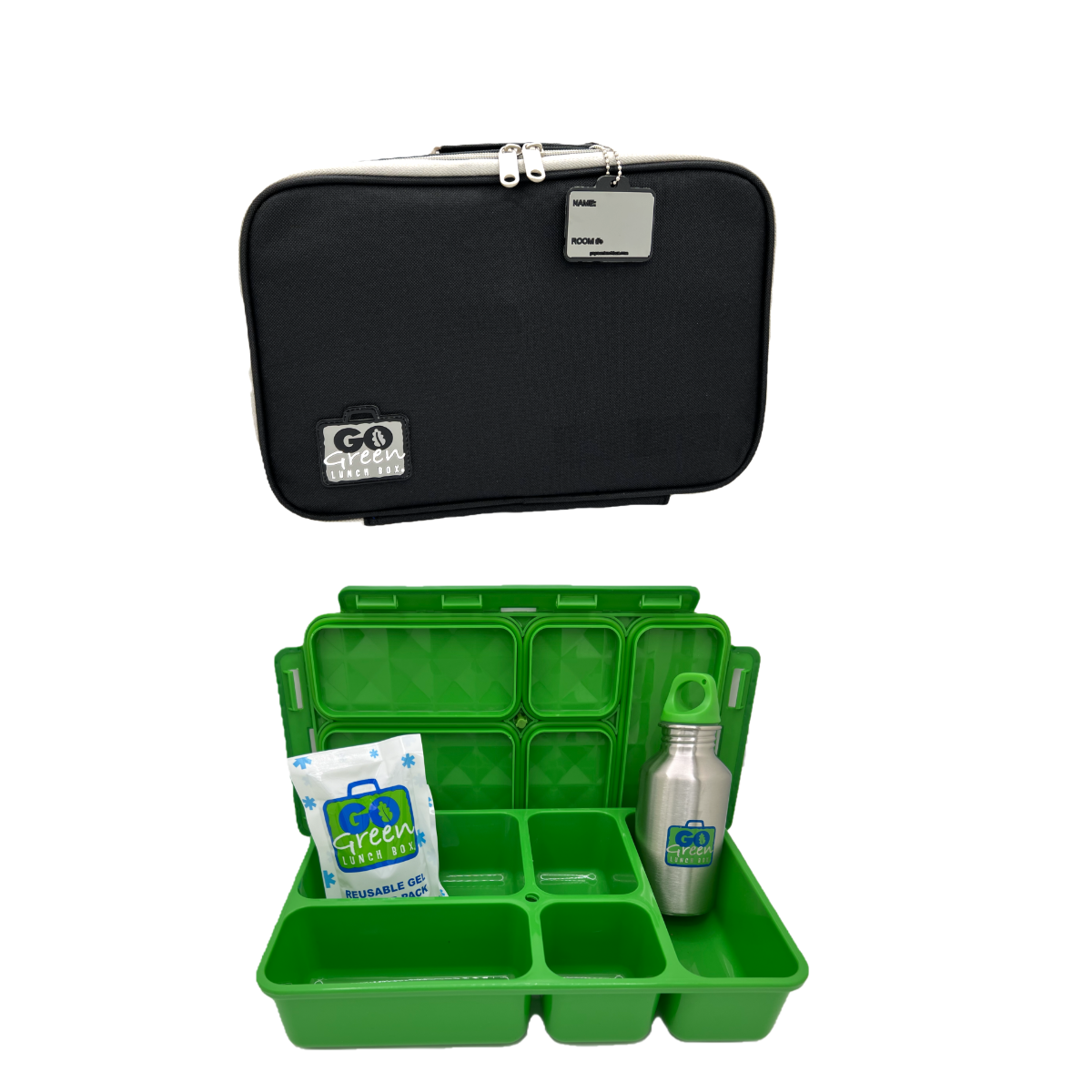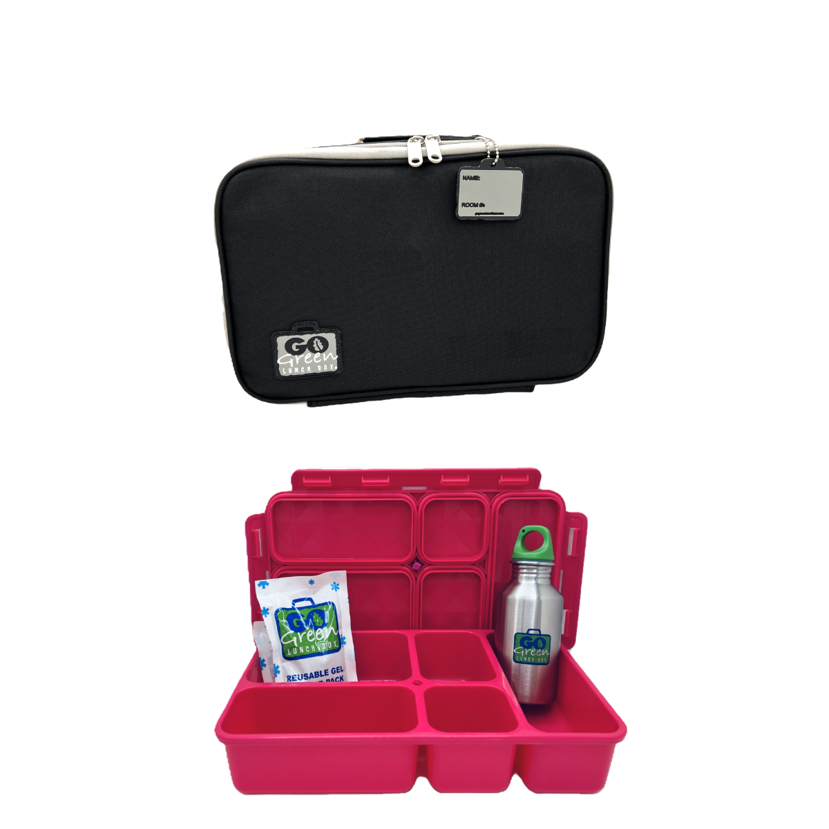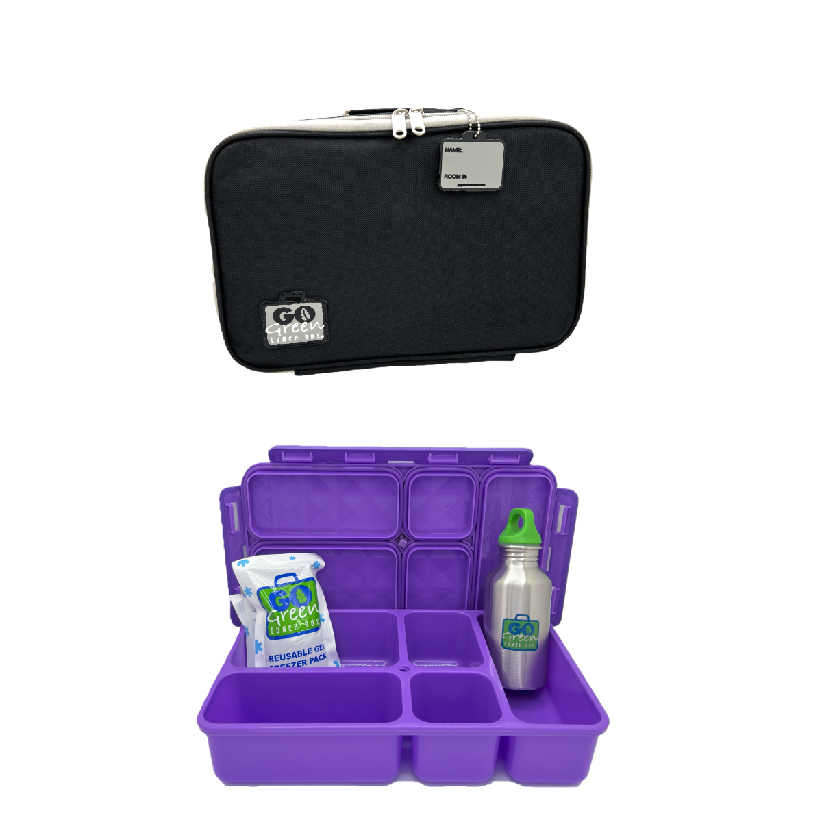 Durable polyester lunch bag for easy cleaning and years of enjoyment. Insulated to keep food cool, with a mesh pocket on the top panel for utensils and napkins. Clever whiteboard for a note to inspire your kids or mate. Spacious 13” x 9” x 3” dimensions for our patented Food Box or your packed lunch.